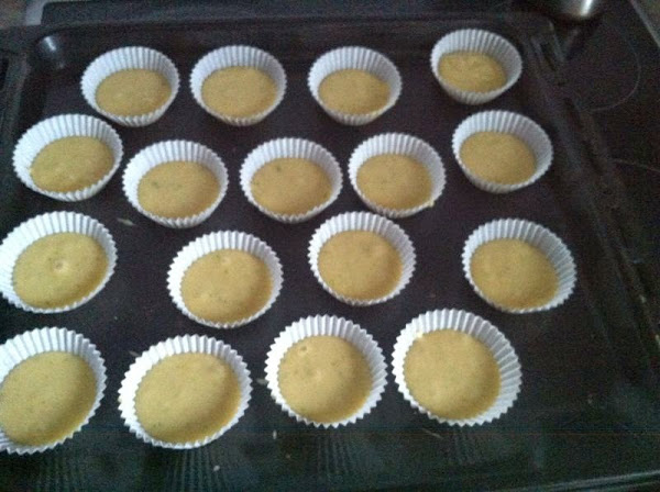 Con que llenéis 1/4 del molde será suficiente. No los coloquéis muy juntos, para que el calor llegue bien por todas ellas, suban mucho y se hagan bien.