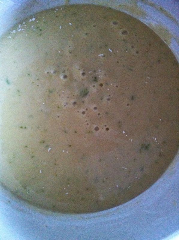 Pasado ese tiempo, volveremos a batir la masa. ¿ Veis las burbujitas ? Eso significa que ha reposado el tiempo que debía, y ya la tenemos lista para hornear.