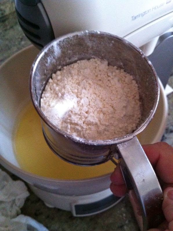 Ahora, mezclaremos la harina con la levadura, la tamizaremos e iremos añadiendola poco a poco.