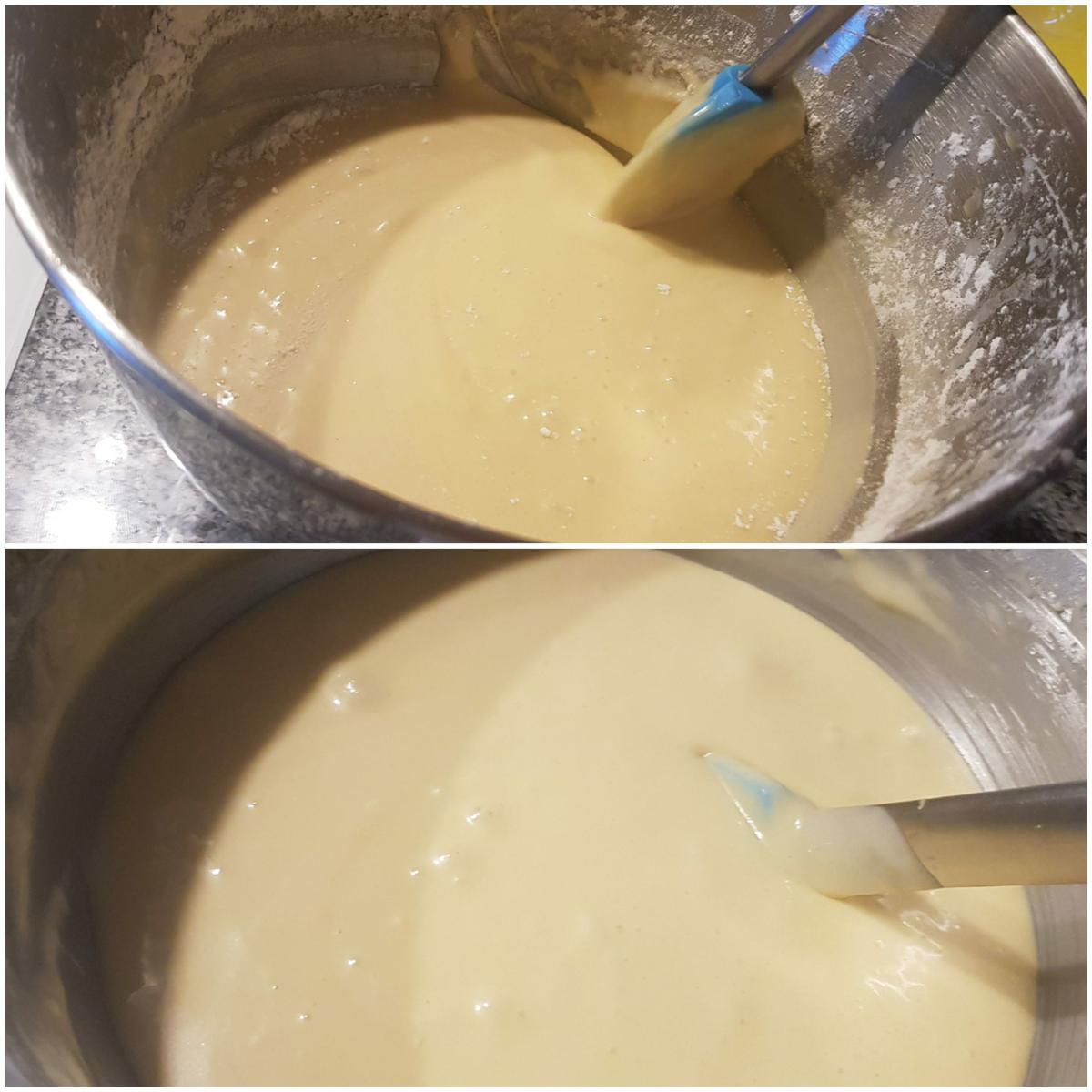 Mezclamos Apagamos la batidora y con la ayuda de una espátula, mezclamos bien todo por si se ha quedado harina en los bordes o en el fondo.