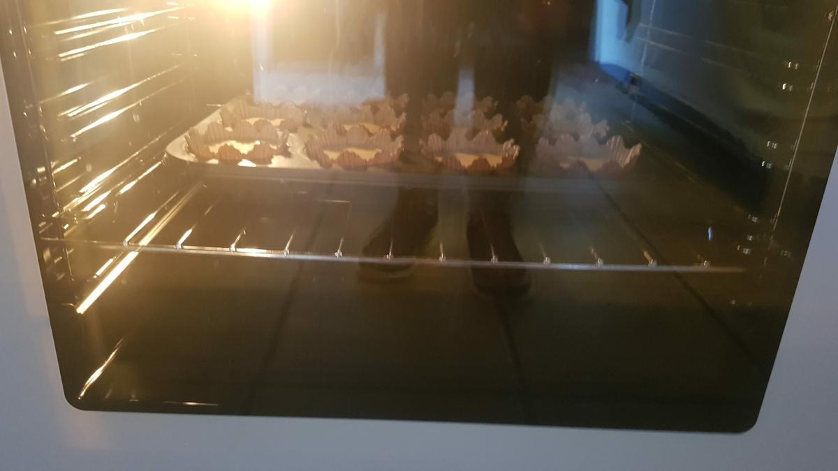 Al horno! Introducimos la bandeja en el horno, previamente precalentado, en el segundo rail empezando por abajo. Y las dejamos 14 minutos, no abrir el horno a mitad de cocción!