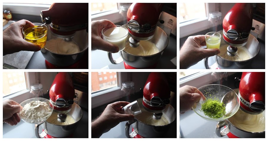 Harina, poco a poco. Impulsor y la ralladura de lima.