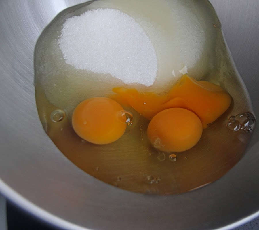 Batimos los huevos con el azúcar, hasta que triplique su volumen.
