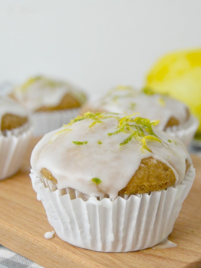 8.- Cubrimos las magdalenas con el glaseado de limón y decoramos con ralladuras de lima y de limón.