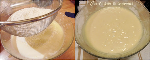 2. En un recipiente bate los huevos con el azúcar (mejor con varillas) hasta que doblen el volumen.