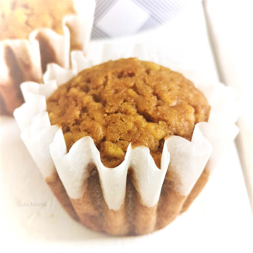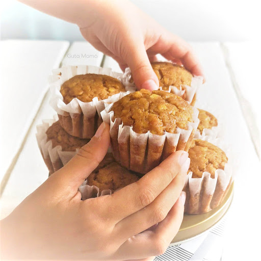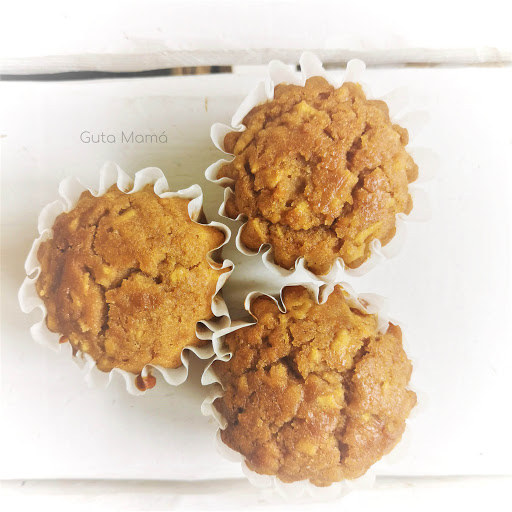 Por tanto, esta receta que comparto hoy, es la primera de muchas de estas recetas dulces un poco más saludables que estoy probando y mejorando, y que os haré llegar en cuanto considere que la receta es de diez. La manzana aporta una dulzura maravillosa, además de una textura jugosa al bocado. No se notan los trocitos, están fundidos con el resto de ingredientes. Una auténtica delicia.