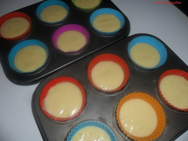 Vertemos en las capsulas las 3/4 partes de su capacidad, espolvoreamos con almendras fileteadas y vertemos un poco de azúcar en cada capsula. Las ponemos en el horno con calor en ambas partes hasta verlas doraditas y bien jugosas.No quedaron ni las migas huuuuu.