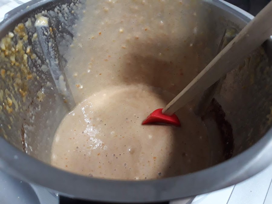 4.- Añadimos la mantequilla y el yogur y mezclamos programando 5 segundos, velocidad 4.