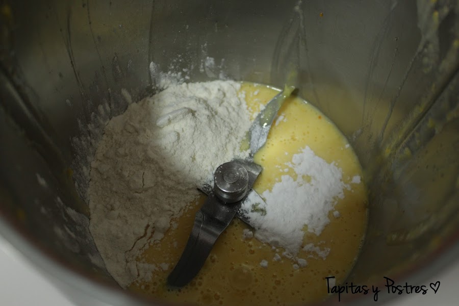 Incorporamos la harina y la levadura y volvemos a mezclar 20 segundos a velocidad 4.