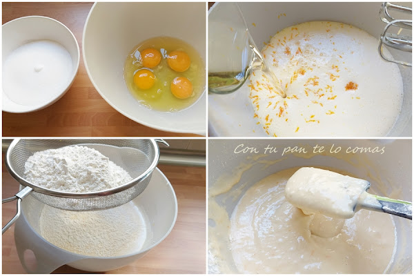 1. Batir los huevos con el azúcar. Se puede hacer con varillas eléctricas o a mano.