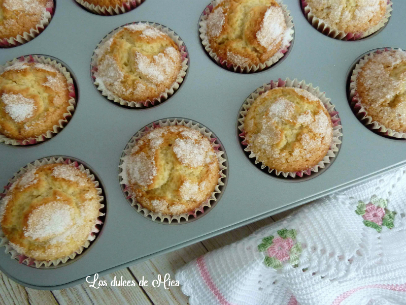 Espolvoreamos la superficie de las magdalenas con azúcar al gusto y dejamos reposar otros 5 minutos.