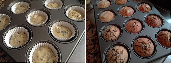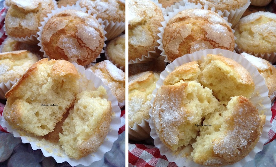 La mitad de la masa la utilicé tal cual rellenando moldecitos hasta 2/3 de capacidad y espolvoreando un poco de azúcar por encima antes de hornear.