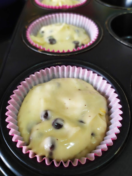Llena las cápsulas de las magdalenas hasta tres partes de su capacidad .