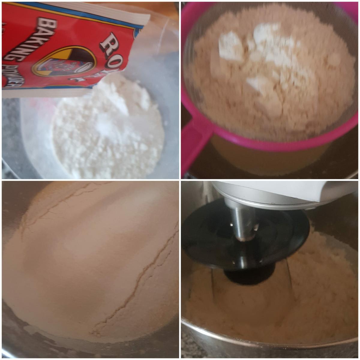 Tamizar la harina Una vez bien mezclados los ingredientes, le añadimos la pizca de sal y removemos un poco. Mezclamos la harina con la levadura y la tamizamos encima del bol, batimos bien hasta que se integre todo.
