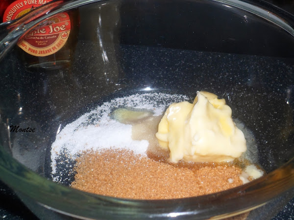 En un bol pondremos la mantequilla, el azúcar moreno y el azúcar avainillado.