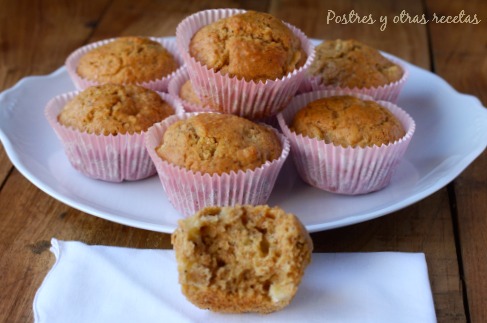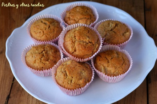 Precalentamos el horno a 180ºC. Colocamos 12 capsulas de papel rizado en un molde para magdalenas y las rellenamos con la masa obtenida, sólo hasta dos tercios de su altura, pues luego sube con la cocción.