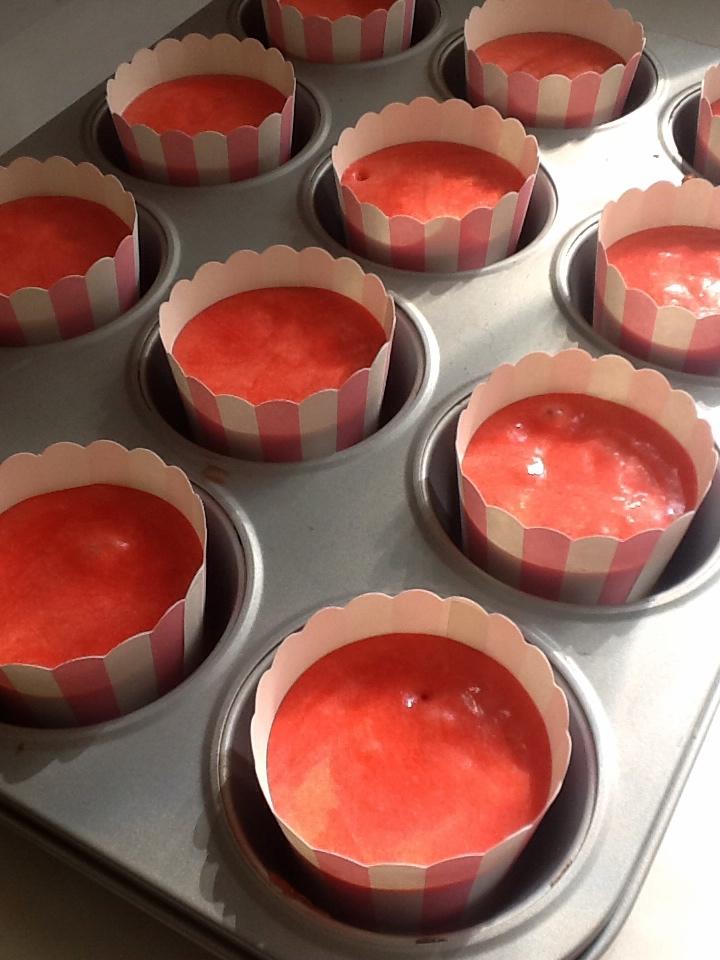 Horneamos unos 18/20 minutos. Comenzarán con un apetecible color fresa que irá oscureciendo a marrón (Una pena!, pero en el interior conservarán un bonito tono rosado similar a las piruletas)
