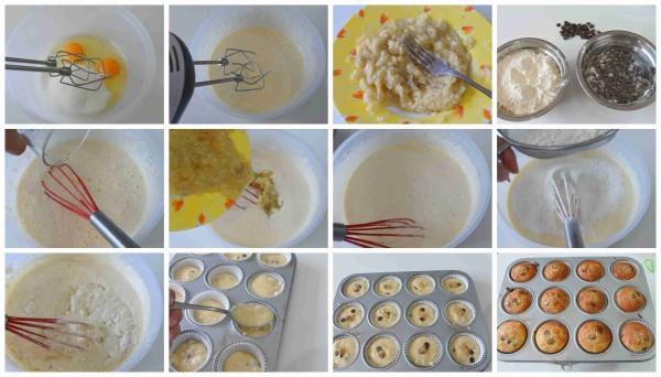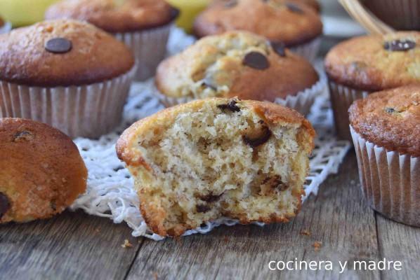 Y ya tenemos listas unas esponjosas magdalenas de plátano con pepitas de chocolate.