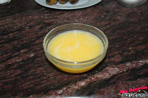Ponemos la mantequilla en un cuenco y la derretiremos en el microondas debemos de tener cuidado no queremos que se nos caliente lo iremos haciendo poco a poco.