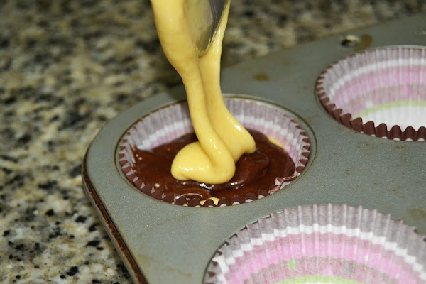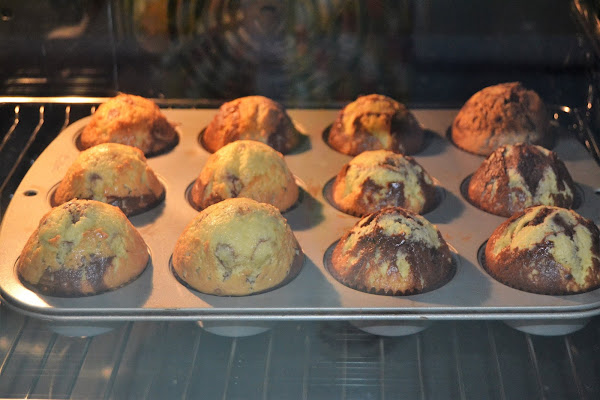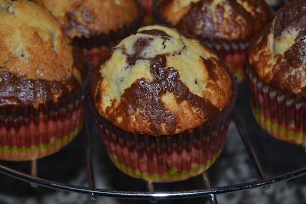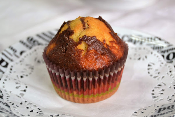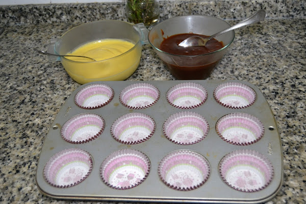 La historia de esta receta, porque la tiene!! es que se me ocurrió hacer unas magdalenas tipo cebra, si como el bizcocho cebra, pero vamos una vez terminadas no se parecían ni por asomo y mira que me tire rato echando cucharada a cucharada con los dos colores, pero ya veis que de cebra nada, de nada.