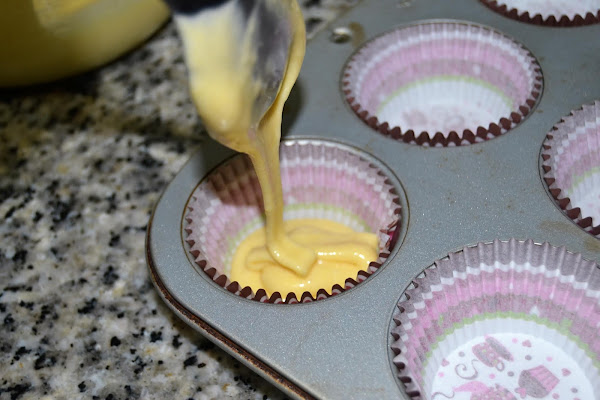 Cuando el horno este a 250º metemos las magdalenas al horno y bajamos la temperatura a 210º y horneamos dieciséis minutos.