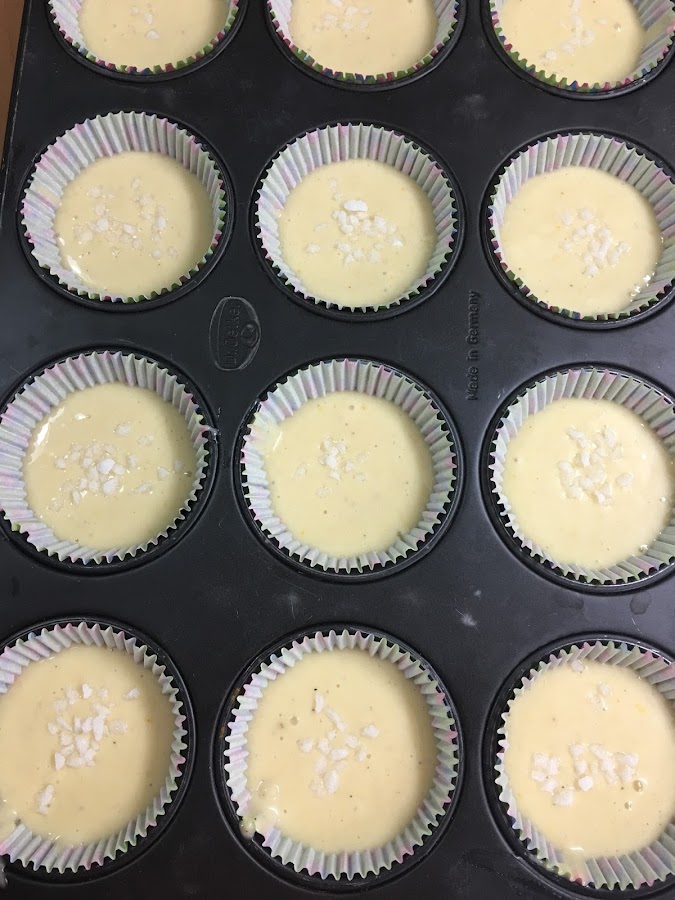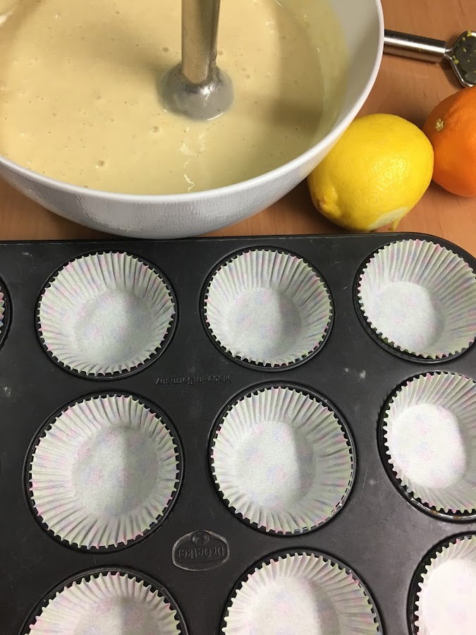 Se precalienta el horno a200ºC con calor arriba y abajo. Mientras tanto, se va preparando la masa de las magdalenas.