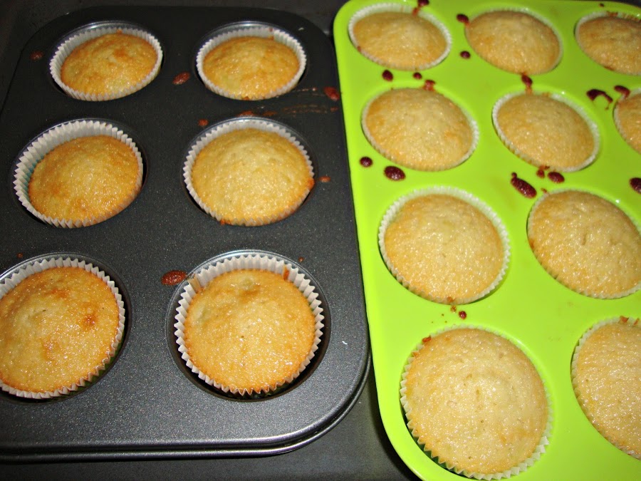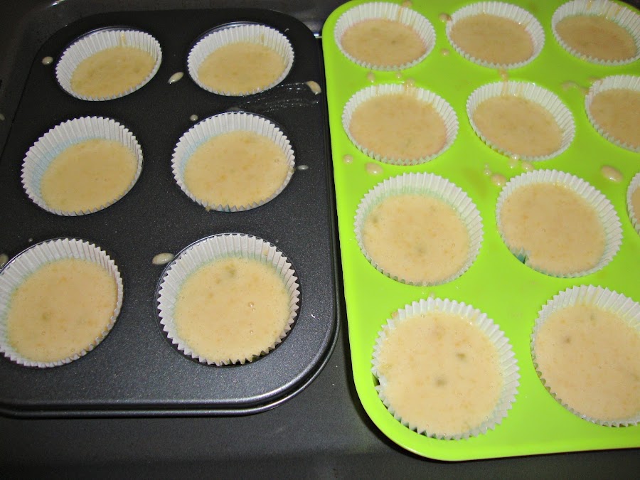 Echamos la mezcla en las cápsulas de magdalenas y metemos en el horno (caliente) a 180º unos 23-25 minutos.