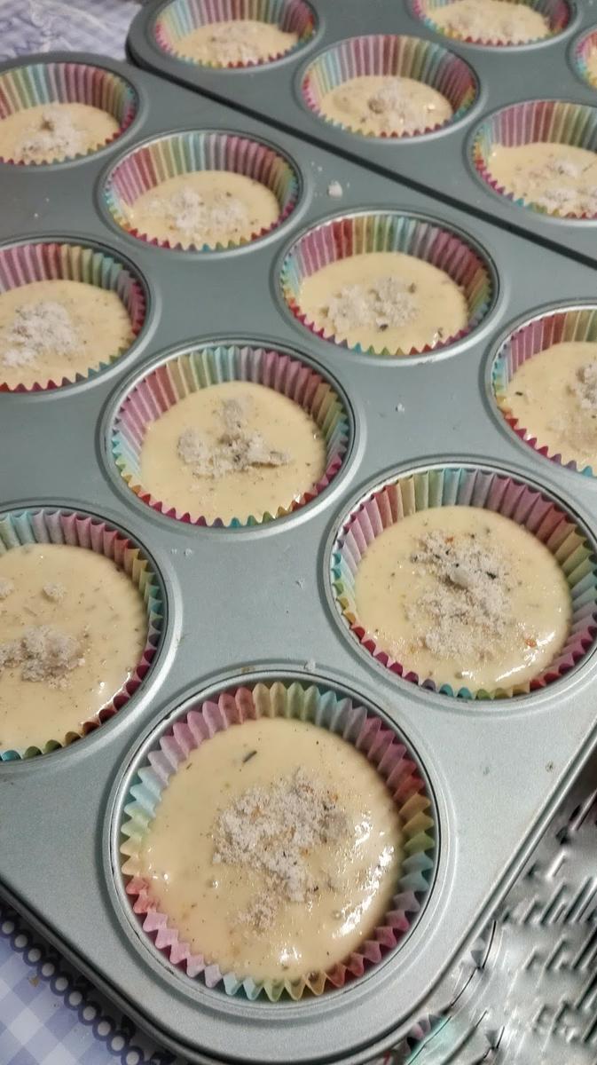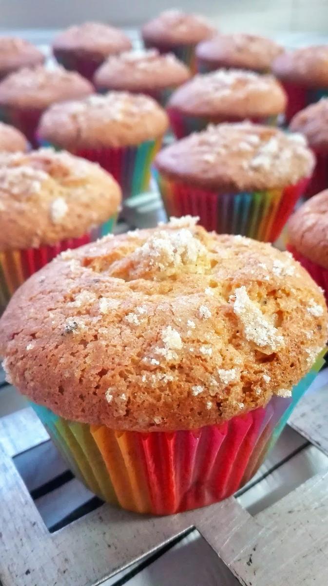 Cuando el horno esté caliente, sacamos las magdalenas del frío y espolvoreamos un poco de azúcar aromatizada sobre cada una de ellas.