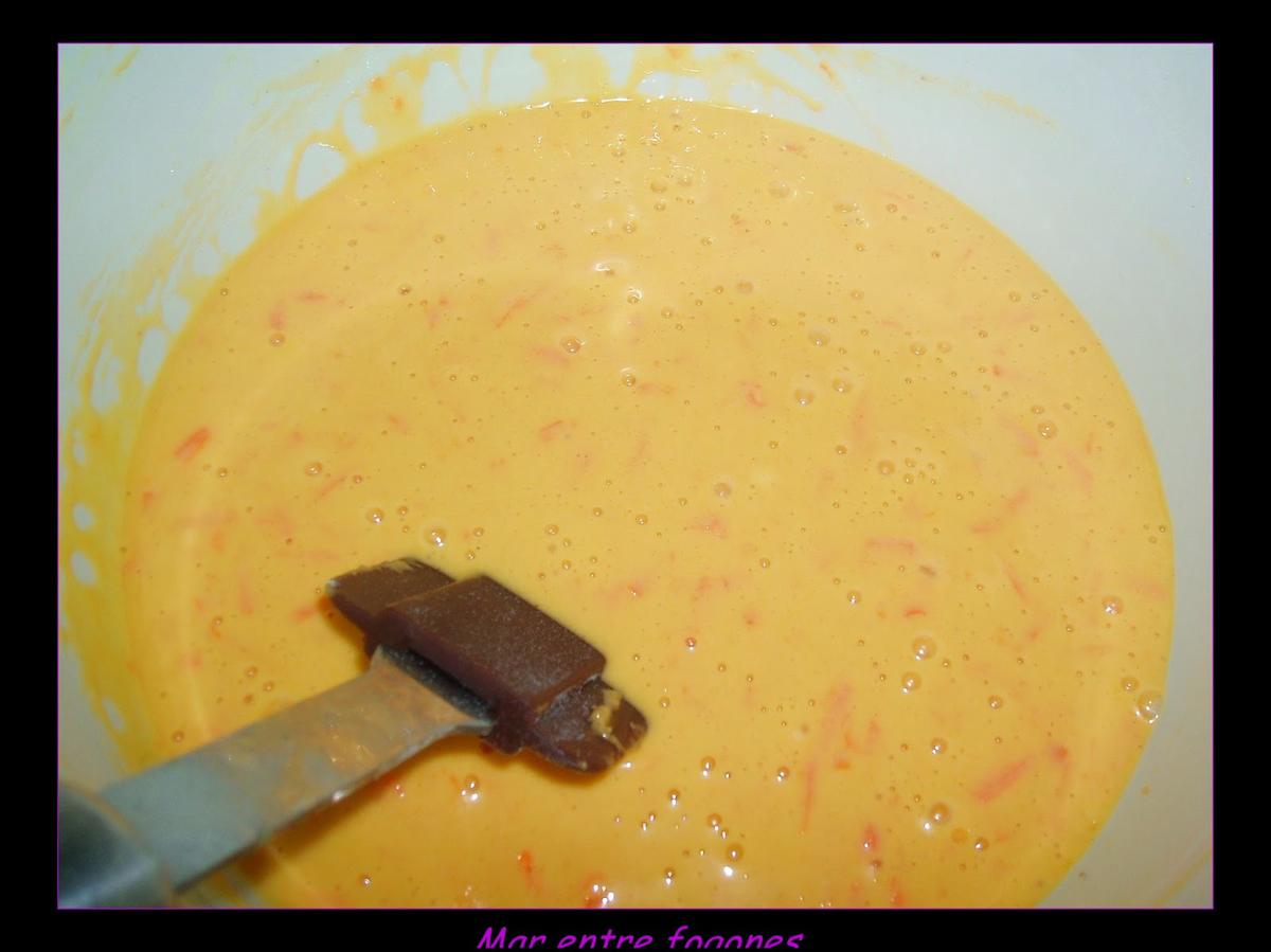 Después introduce la harina, la levadura y la zanahoria reservada.