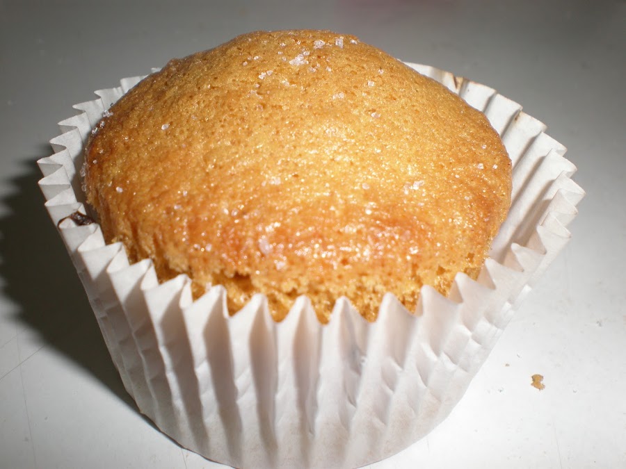 7º - Ponemos los moldes en el horno ya precalentado y horneamos unos 30 minutos , hasta que se doren las magdalenas . Echamos un pelín de azúcar por encima de cada magdalena y a degustar .