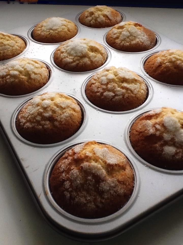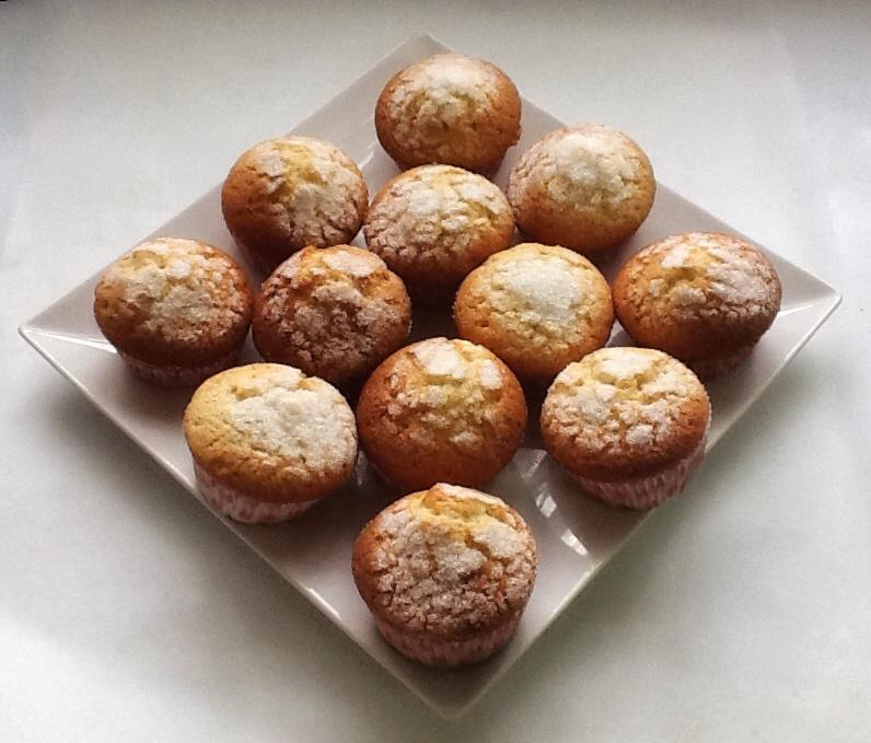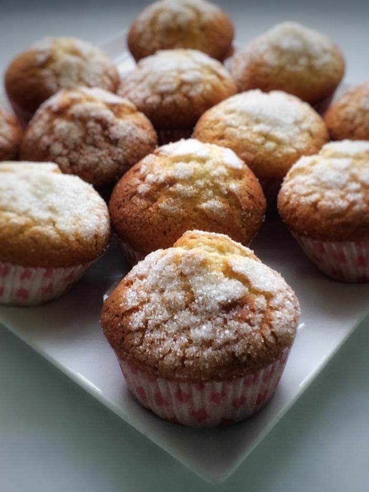 Llenamos cada cápsula de magdalena 2/3 de su capacidad con la masa y espolvoreamos sobre cada una azúcar en grano al gusto (Para conseguir la rica capita crujiente de azúcar)