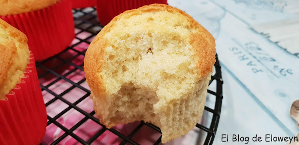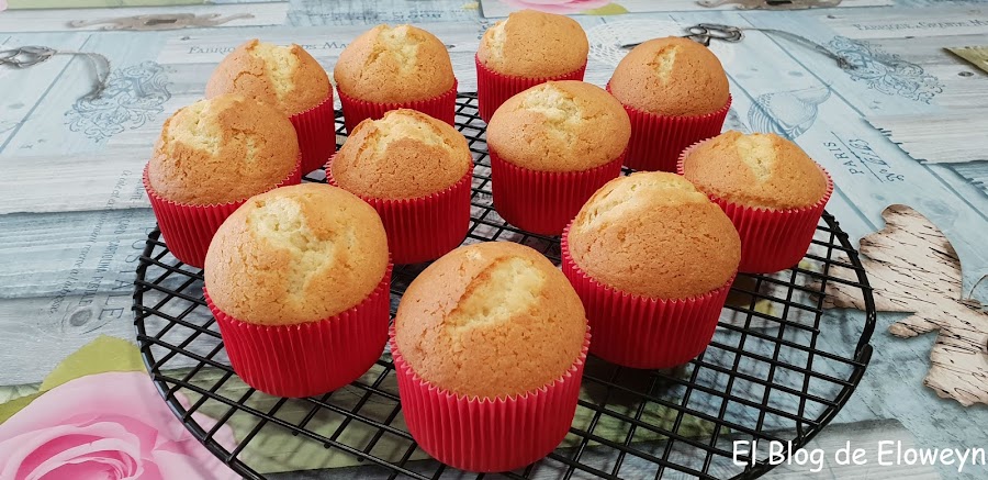 Al final, y después de mucho buscar, lo encontré por Amazon. Venía con unos cuantos moldes de papel de color rojo para hacer magdalenas. Cuando se lo regalé a mi hija, le encantó, y lo primero que decidió hacer fueron estas magdalenas esponjosas. ¡Nos encantaron!