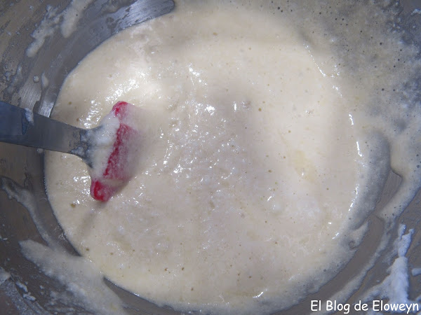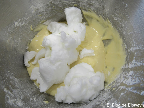 Por último, y con mucho cuidado, añadimos las claras a punto de nieve.
