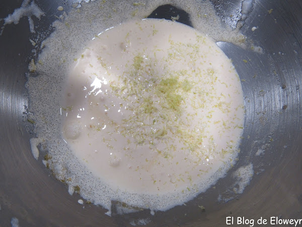 Rallamos la media cáscara de limón y se lo añadimos a la mezcla de las yemas con azúcar.