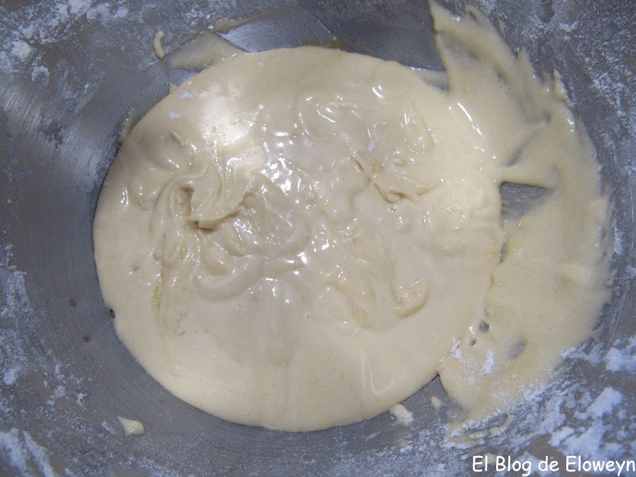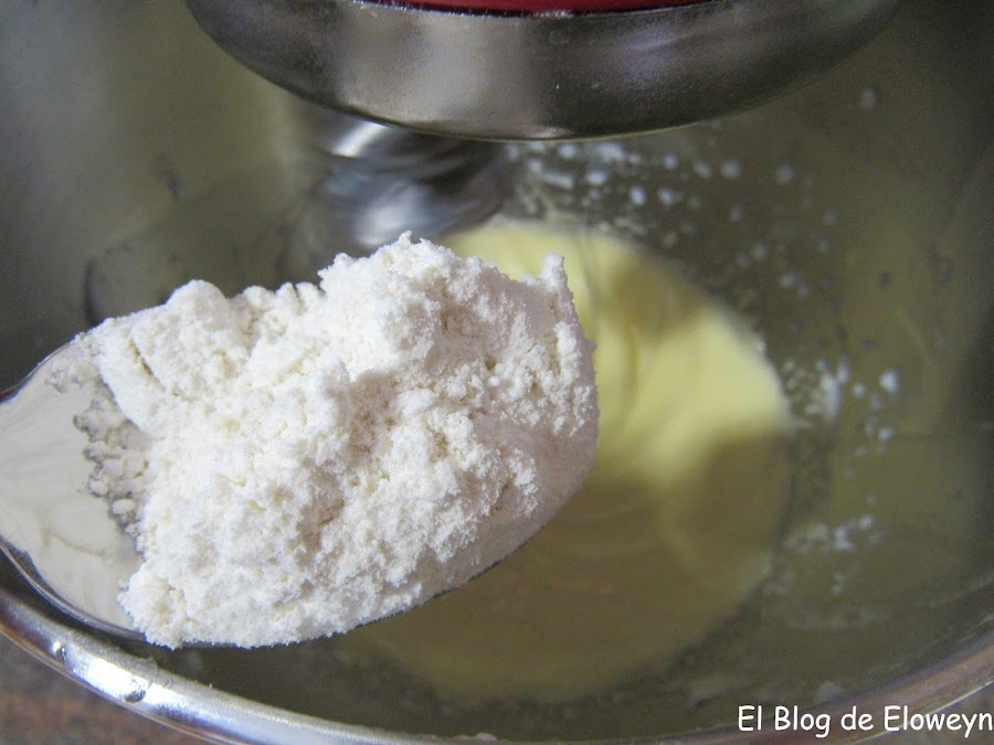 Añadimos poco a poco a la mezcla la harina con la levadura tamizada mientras lo vamos removiendo.
