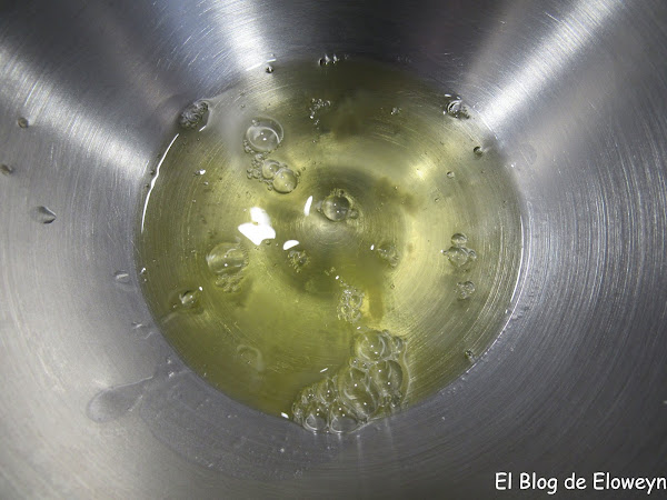 Vertemos los 100 ml. de aceite y mezclamos con las varillas.