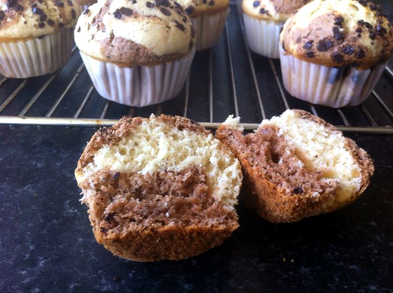 Bueno, pues con esta receta, os digo, que no cumplí ni uno de estos pasos. Me compré un libro de cocina, de esos que no son de ningún cocinero concreto, si no que son una recopilación. Hojeándolo vi estos muffins marmolados y sin pensarlo me metí en la cocina.