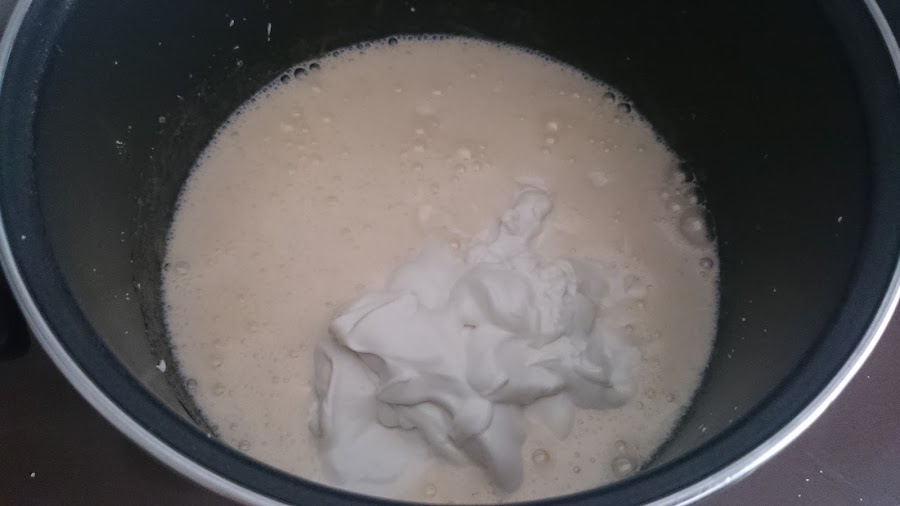 cuando esté ya añadiremos el yogurt y batiremos bien,