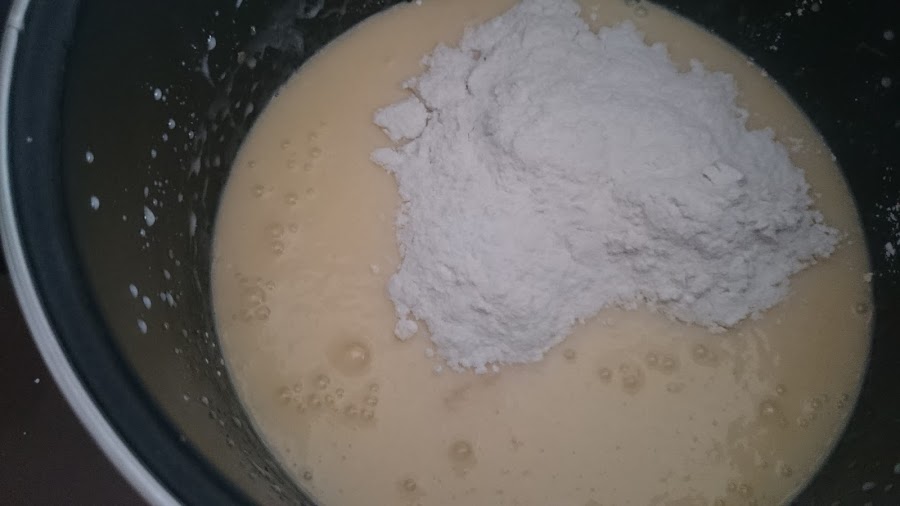 seguidamente procederemos a echar junto con todo lo demás pero no todo, iremos ehando la harina poco a poco y batiendo, hasta que echemos toda la harina,