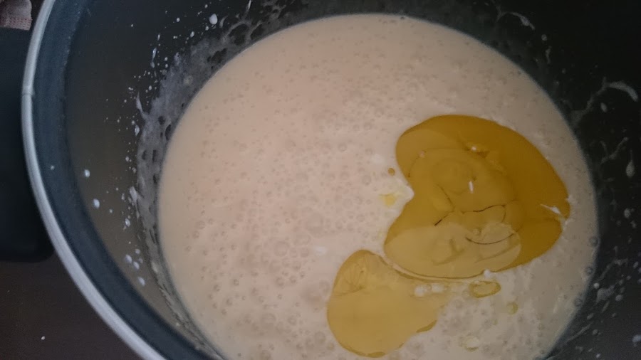 seguidamente añadimos el aceite y batimos,