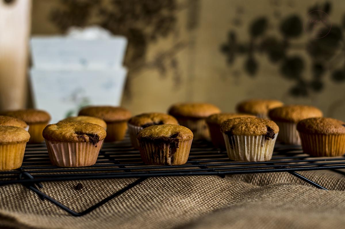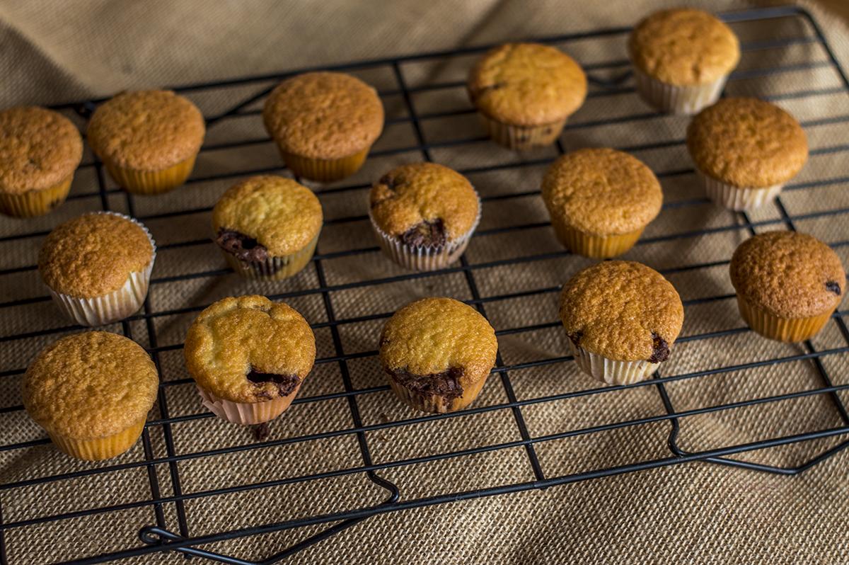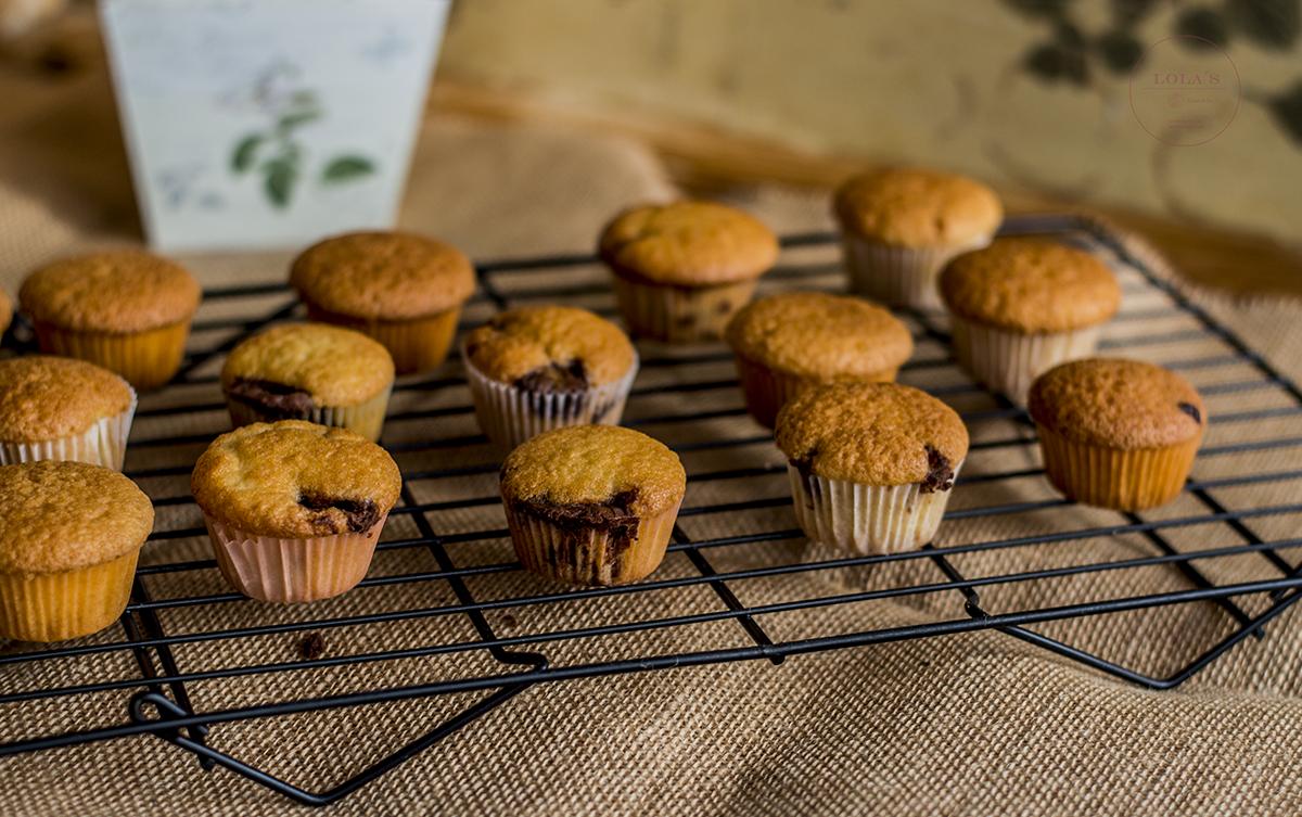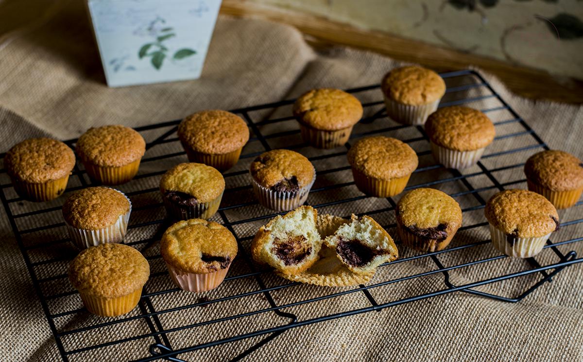 Pon una cucharada de masa en las cápsulas de papel, pon el centro un cucharadita de Crema de cacao y avellanas y cubre con otra cucharada de masa de las magdalenas. Ten cuidado de que no sobrepasen las 3/4 partes de las cápsulas.
