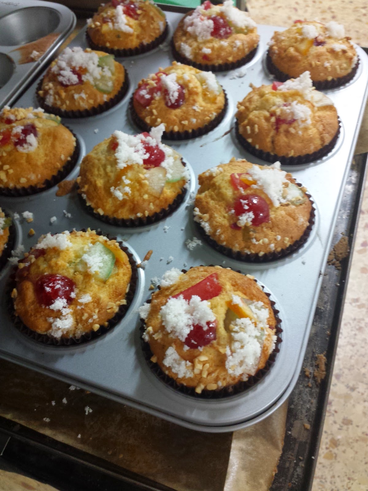 Ya sé que voy un poco tarde, pero con tantos cambios no hay tiempo de nada, pero igual os viene bien la receta para aprovechar los restos de fruta confitada que tengáis en la despensa, esta receta es bien sencilla, tiene el toque del saborcito a roscón y por supuesto la fruta escarchada.