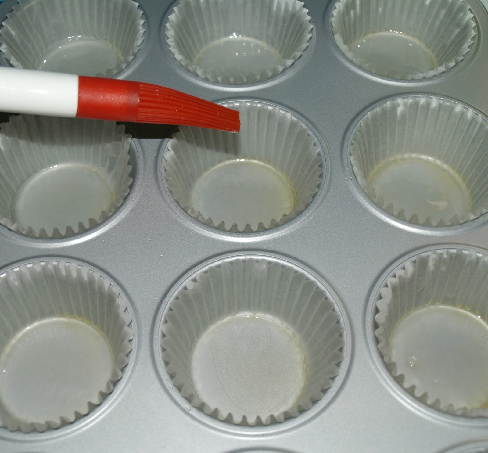 - Pintamos de aceite unos moldes de papel para magdalena.