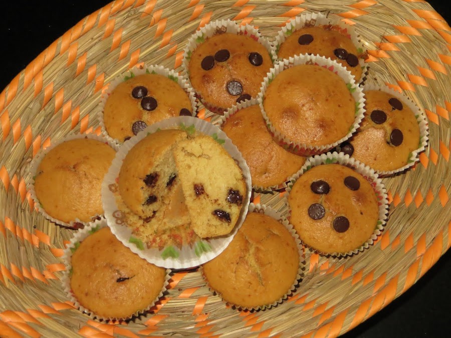 Rellenamos nuestros moldes de magdalenas y metemos al horno previamente precalentado a 200º durante 20 minutos. Sacamos, dejamos enfriar y listas para comer.