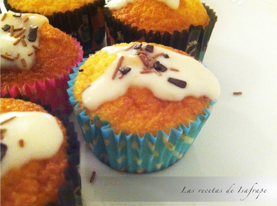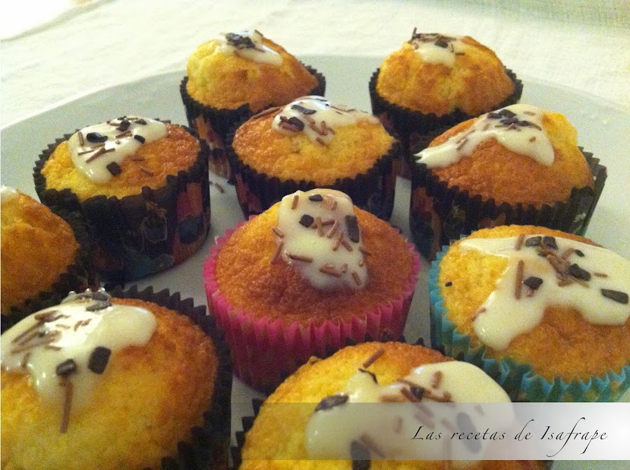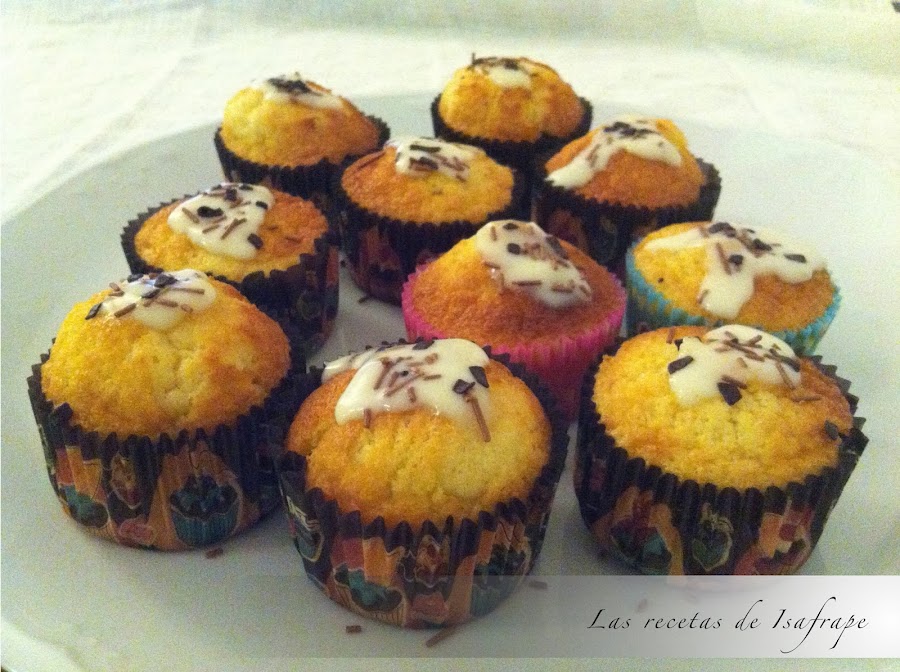 Llenar los moldes con la mezcla hasta las dos terceras partes. Horneamos hasta que se hayan dorado las magdalenas.