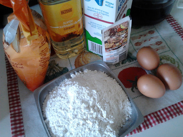 En un bol ponemos los huevos y el azúcar, lo mezclamos muy bien con las varillas (eléctricas o manuales). Se añade la leche, el aceite y la ralladura de limón. Por último se añade el harina, la levadura y la sal, tamizado con un colador. Se mezcla bien hasta que quede homogéneo. Dejamos reposar entre 30 y 60 minutos.