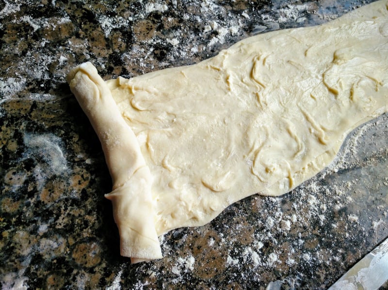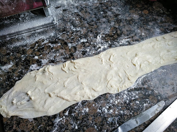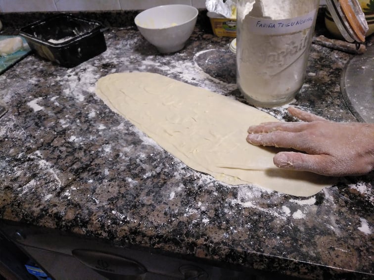 Para hacer esta tira, tenéis que tener en todo momento bien enharinada la masa o se os pegará.