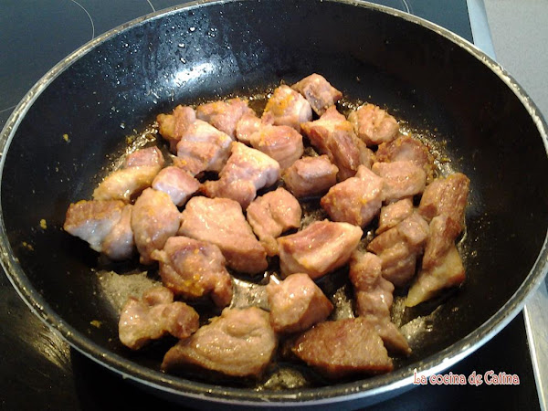 En una sartén con aceite freímos los trozos de magra en varias tandas, para que nos resulte mas fácil.