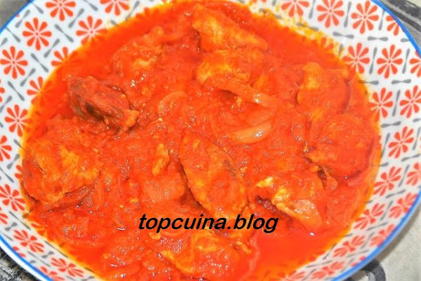 Añadir la salsa de tomate casera (hecha con tomates, cebollas, ajos y pimientos) y el laurel.