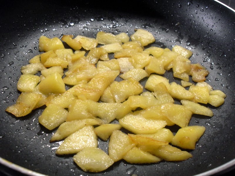 Pelar y descorazonar 3 o 4 manzanas reinetas o golden.